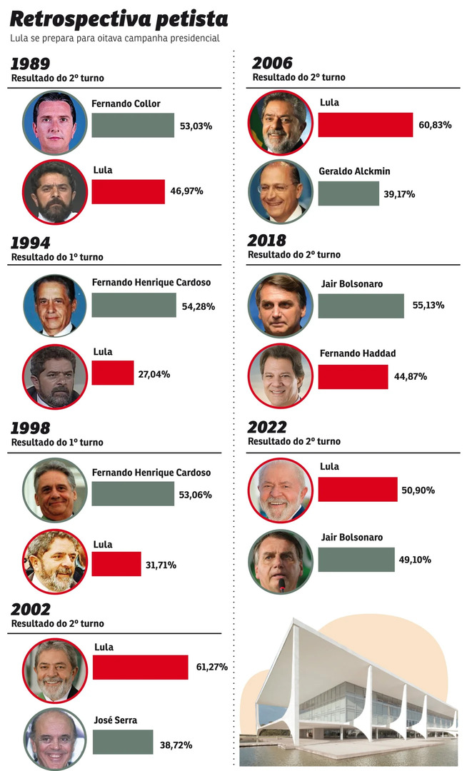 Já no campo da disputa política, Lula orientou ministros a levantarem dados sobre o que foi feito até o momento, que serão comparados com a gestão anterior, de Jair Bolsonaro, durante a campanha. O presidente encomendou, inclusive, um estudo sobre as políticas sociais implementadas pelos governadores de direita, possíveis adversários na corrida eleitoral. Ele deve explorar, ainda, a conexão do candidato da direita a Bolsonaro e à tentativa de golpe de Estado pela qual o ex-presidente foi condenado à prisão.