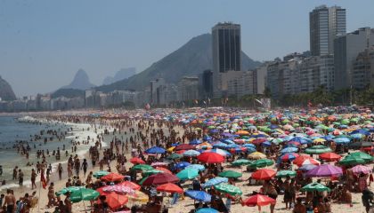Moradores e turistas recorreram às praias do Rio de Janeiro neste domingo (17) para se refrescar durante a onda de calor sufocante na capital fluminense.