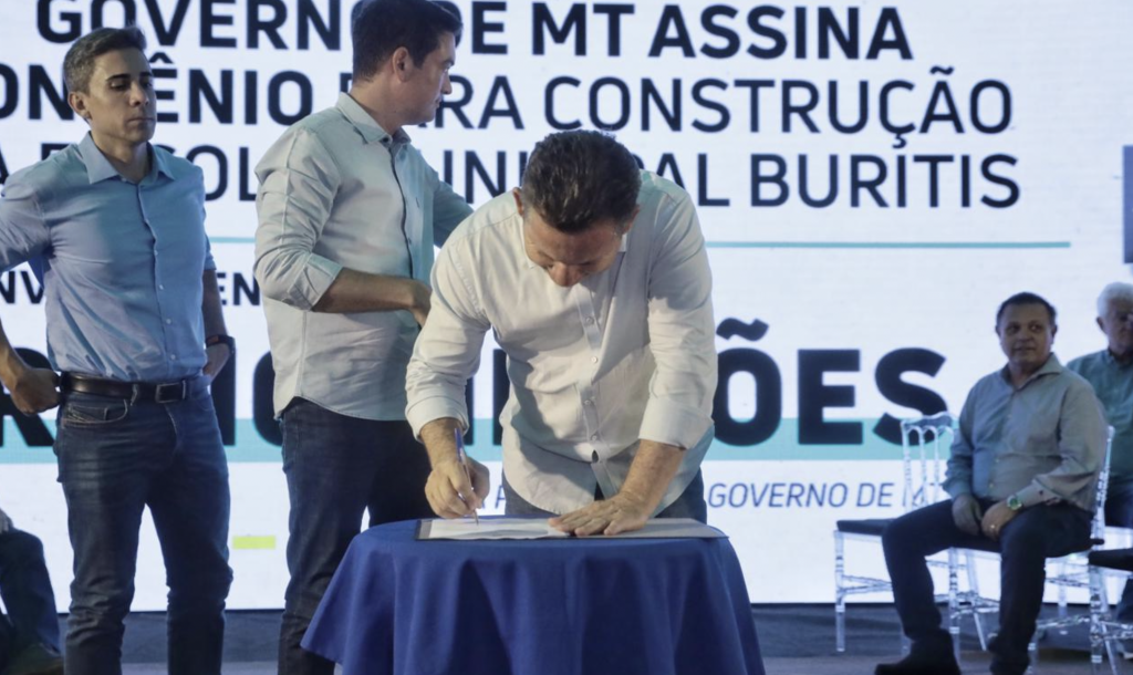 O governador Mauro Mendes assinou, nesta terça-feira (12.03), um convênio com a prefeitura de Primavera do Leste para construção da Escola Estadual Buritis.