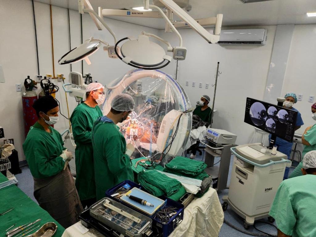 O Hospital Metropolitano, unidade mantida pela Secretaria Estadual de Saúde (SES-MT) em Várzea Grande, realizou a primeira neurocirurgia de implante de estimulador cerebral profundo, que visa melhorar os sintomas da doença de Parkinson. O novo procedimento passa a integrar a cartela de serviços ofertados pelo Sistema Único de Saúde (SUS) em Mato Grosso e beneficiará pacientes regulados que se enquadram nos critérios do procedimento.