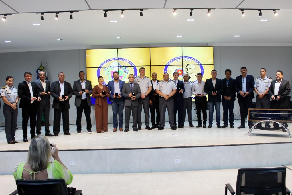 Na cerimônia, estiveram presentes 18 oficiais que fizeram parte da “Turma Pioneira - Marechal Rondon”, que foram agraciadas com a entrega de uma moeda honorífica, de mesmo nome, que marca as três décadas da turma formada na Academia de Polícia Militar Costa Verde (APMCV). O subchefe de Estado-Maior Geral, coronel Wilker Soares Sodré, que faz parte da turma, celebrou as homenagens recebidas pelos oficiais.