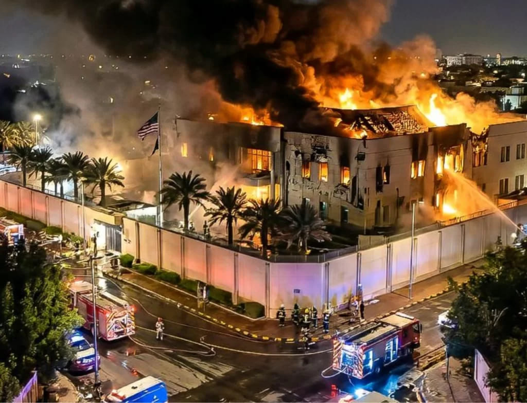 A embaixada dos Estados Unidos em Riad, na Arábia Saudita, foi atingida por dois drones na terça-feira (3, noite de segunda em Brasília). O local estava vazio, e não houve mortos ou feridos, disse a representação americana.
